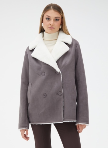 Вид ворота - английский воротник, отделка эко мех