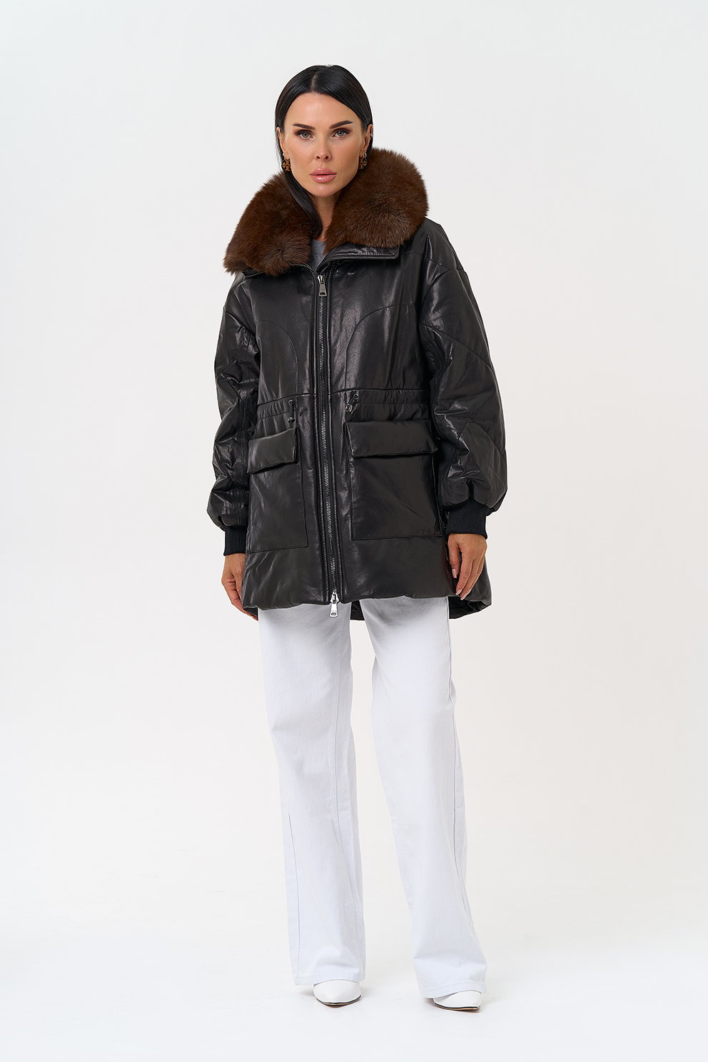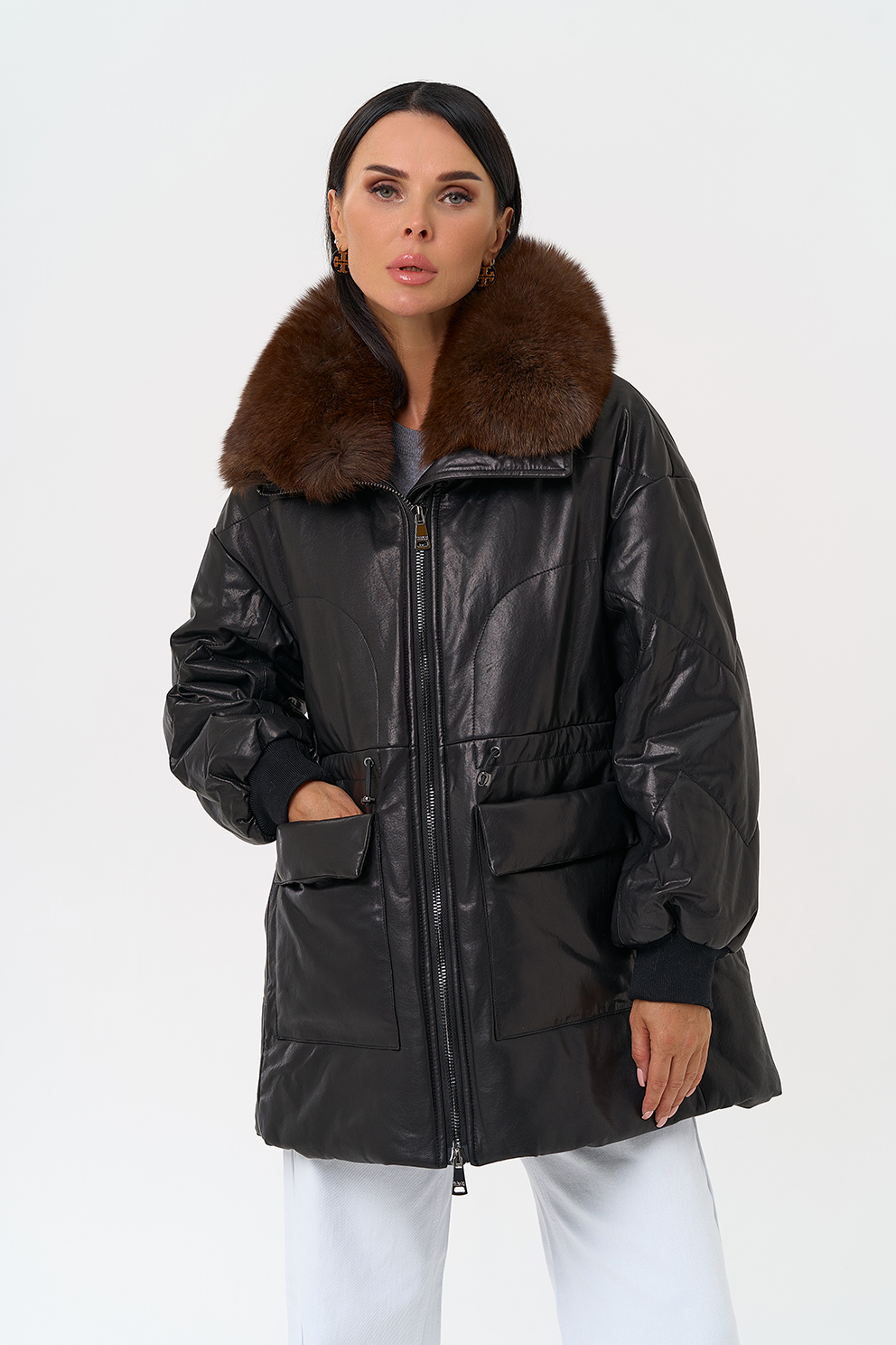 Утепленная кожаная куртка с песцом
