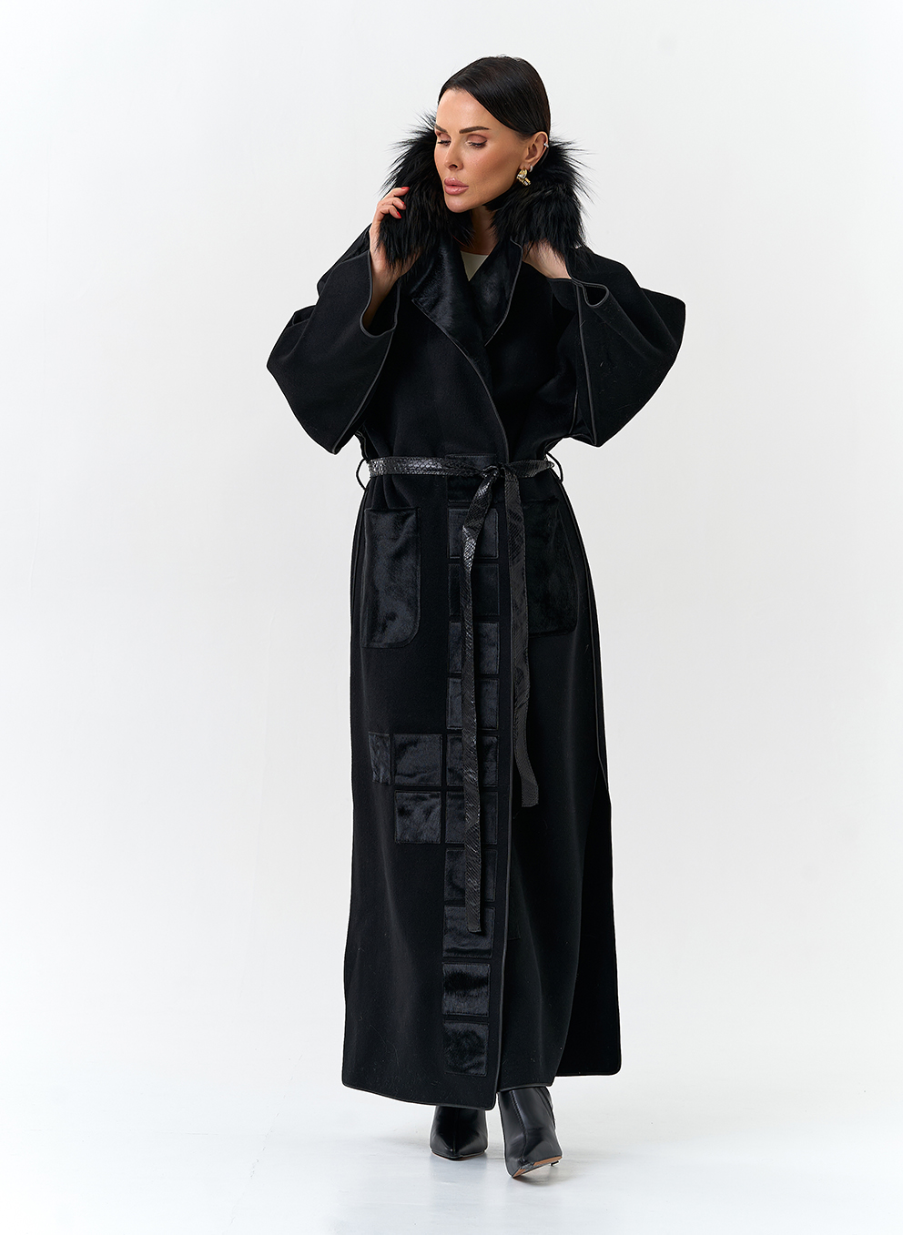 Отделка воротника - мех лисы, цвет черный; Cavallino