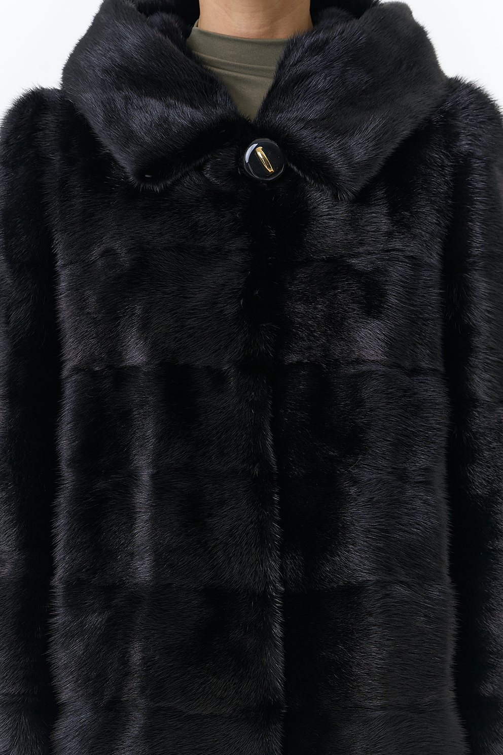 Шуба поперечной раскладки в черном цвете из меха норки.