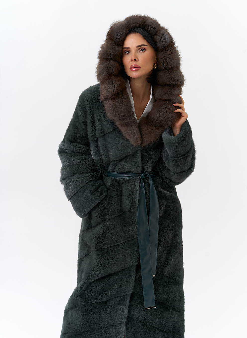 Тип ворота - капюшон, отделка куница